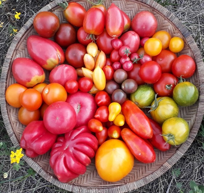 Schlendern Sie durch unsere bunten Gärten, erfreuen Sie sich an üppigen Gemüsebeeten und bunter Tomatenvielfalt. Im Waldgarten gibt es allerlei zu entdecken und schattige Plätze laden zum Verweilen ein.